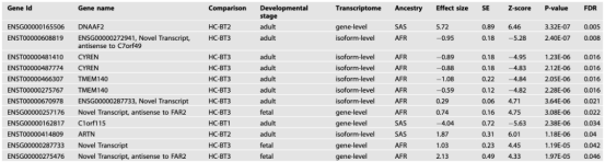 表 1. 基于全轉(zhuǎn)錄組關(guān)聯(lián)分析(TWAS)的精神病性障礙生物亞型顯著關(guān)聯(lián)基因/轉(zhuǎn)錄本
