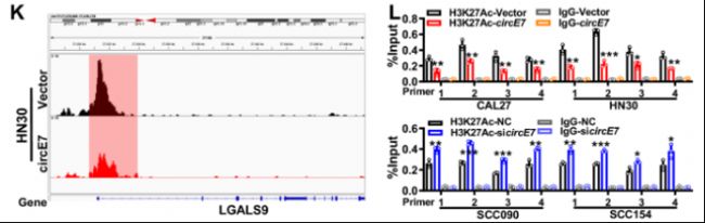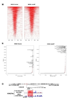 圖:HN30細(xì)胞中過表達(dá)circE7的ChIP-seq和ChIP-qPCR分析