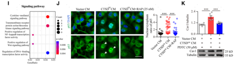 圖6. 分泌的pro-CTSD與LRP1受體細(xì)胞外結(jié)構(gòu)域2結(jié)合,激活內(nèi)皮細(xì)胞NF-kb信號(hào)通路上調(diào)Cav1表達(dá),增強(qiáng)囊泡介導(dǎo)的轉(zhuǎn)胞吞作用