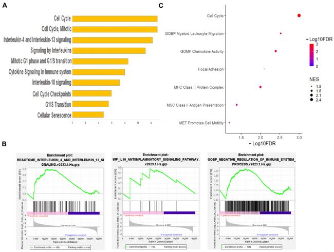 圖2 RNA-seq 分析顯示與 h-MSCs 共培養(yǎng)的小膠質(zhì)細(xì)胞對(duì)細(xì)胞周期和免疫系統(tǒng)的調(diào)節(jié)。