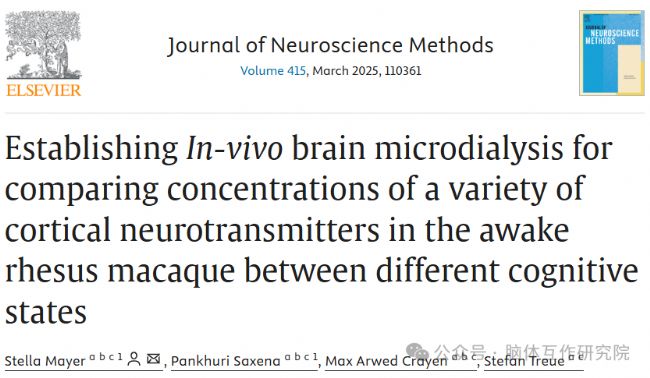 該研究的作者團隊由來自倫敦大學(xué)的Stella Mayer、Iryna Danylenko、Viktoria A. Misiak、John C. Rothwell以及來自英國醫(yī)學(xué)研究委員會分子生物學(xué)實驗室的Seth G. Grant組成。他們憑借在神經(jīng)科學(xué)、實驗技術(shù)等多個領(lǐng)域積累的深厚專業(yè)知識,進行了在清醒恒河猴上建立體內(nèi)腦微透析技術(shù)的研究。