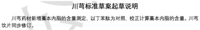 2024年9月25日,國家藥典委公示了川芎國家藥品標(biāo)準(zhǔn)修訂草案,新增了藁本內(nèi)脂的含量測定,以丁苯酞為對照,校正計算藁本內(nèi)脂的含量。