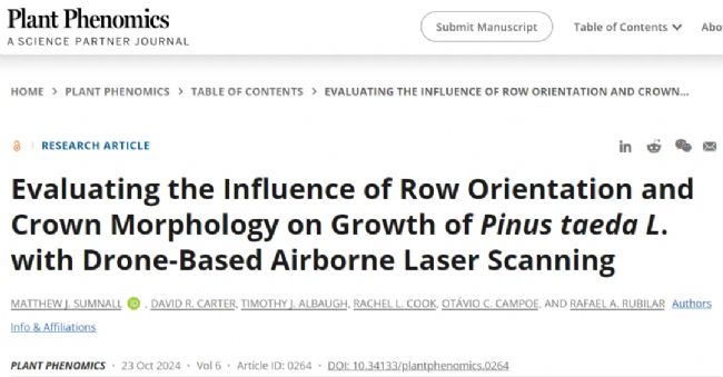 Plant Phenomics | 基于無(wú)人機(jī)激光掃描技術(shù)探索行列方向與樹冠形態(tài)對(duì)火炬松生長(zhǎng)的影響