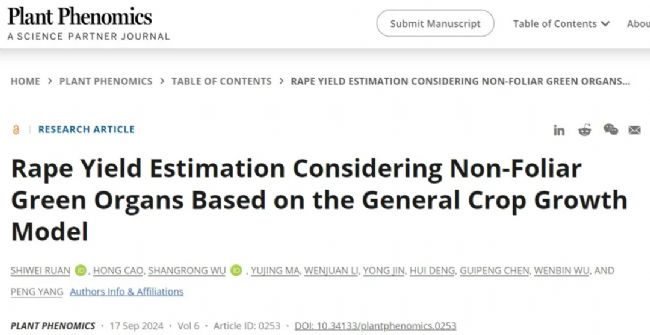 《植物表型組學(xué)》(Plant Phenomics)是由南京農(nóng)業(yè)大學(xué)主辦的英文學(xué)術(shù)期刊,于2019年1月正式上線發(fā)行。采用開放獲取形式,刊載植物表型組學(xué)交叉學(xué)科熱點(diǎn)領(lǐng)域具有突破性科研進(jìn)展的原創(chuàng)性研究論文、綜述、數(shù)據(jù)集和觀點(diǎn)。具體范圍涵蓋高通量表型分析的最新技術(shù),基于圖像分析和機(jī)器學(xué)習(xí)的表型分析研究,提取表型信息的新算法,作物栽培、植物育種和農(nóng)業(yè)實(shí)踐中的表型組學(xué)新應(yīng)用,與植物表型相結(jié)合的分子生物學(xué)、植物生理學(xué)、統(tǒng)計(jì)學(xué)、作物模型和其他組學(xué)研究,表型組學(xué)相關(guān)的植物生物學(xué)等。期刊已被DOAJ、Scopus、PMC、EI和SCIE等數(shù)據(jù)庫(kù)收錄。科睿唯安JCR2023影響因子為7.6,位于農(nóng)藝學(xué)、植物科學(xué),遙感一區(qū)。2023年中科院期刊分區(qū)位于農(nóng)林科學(xué)大類一區(qū)。2020年入選中國(guó)科技期刊卓越行動(dòng)計(jì)劃高起點(diǎn)新刊項(xiàng)目、2024年入選江蘇科技期刊卓越行動(dòng)計(jì)劃領(lǐng)軍期刊項(xiàng)目、中國(guó)科技期刊卓越行動(dòng)計(jì)劃二期英文梯隊(duì)期刊。
