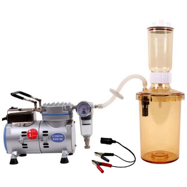 需要注意的是,雖然很多應用都需要適應Φ 47或50mm標準濾膜,但是由于沒中應用都有自身的特性,如濾液化學性質(zhì)、使用場所、過濾后需要濾膜上的產(chǎn)物還是濾液等都不盡相同,所以在搭配的抽濾泵、過濾裝置結(jié)構(gòu)、過濾瓶組的材質(zhì)等各方面都有顯著差異。 例如環(huán)境監(jiān)測和科研機構(gòu)會外出,進行江河湖海等地表水的采用過濾。針對這種應用的便攜式真空抽濾裝置FS300PDC,雖然同樣能夠適配直徑47、50mm濾膜,但是由于不在室內(nèi)實驗室過濾,所以在電機的電源上采用直流電機,可以連接汽車點煙器、蓄電池、充電寶移動電源進行供電。為了方便攜帶,避免運輸時的破損和不變,該機型的過濾瓶全部采用工程塑料材質(zhì)制作,沒有任何玻璃不見,輕便、耐摔。過濾瓶的所有部件采用套娃式結(jié)構(gòu),小部件置入大部件中,最后全部放入集液瓶內(nèi)一體收納,便于運輸時縮小空間占用。