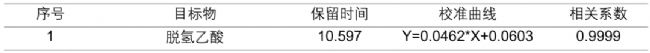 表1 脫氫乙酸校準(zhǔn)曲線及相關(guān)系數(shù)