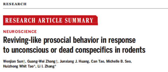 Sun et al., Science 387, eadq2677 (2025),Reviving-like prosocial behavior in response to unconscious or dead conspecifics in rodents