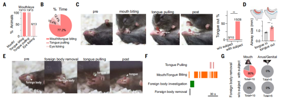 圖1:清醒小鼠對無意識小鼠進行拖拽舌頭救助樣行為