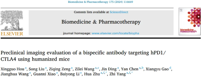 北京大學(xué)腫瘤醫(yī)院暨北京市腫瘤防治研究所,核醫(yī)學(xué)科,國(guó)家藥監(jiān)局放射性藥物研究與評(píng)價(jià)重點(diǎn)實(shí)驗(yàn)室,惡性腫瘤發(fā)病機(jī)制及轉(zhuǎn)化研究教育部重點(diǎn)實(shí)驗(yàn)室、貴州大學(xué)醫(yī)學(xué)院等團(tuán)隊(duì)合作的研究成果Preclinical imaging evaluation of a bispecific antibody targeting hPD1/CTLA4 using humanized mice(人源化小鼠對(duì)hPD1/ CTLA4雙特異性抗體的臨床前影像學(xué)評(píng)價(jià))在學(xué)術(shù)期刊《Biomedicine & Pharmacotherapy》發(fā)表。平生公司的小動(dòng)物PET/CT(型號(hào):Super Nova)產(chǎn)品在論文中提供了重要的腫瘤小鼠PET/CT圖像和定量分析。