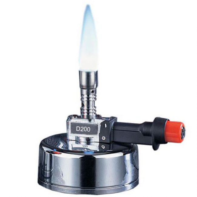 ●臺(tái)式垂直火焰:如D200臺(tái)式本生燈,儲(chǔ)氣罐在整體結(jié)構(gòu)的底部,可以直接放置在臺(tái)面是用,噴嘴垂直于儲(chǔ)氣罐上,火焰燃燒時(shí)垂直向上。適合于定特定容器內(nèi)的溶劑溶液進(jìn)行加熱、將接種環(huán)、鑷子等手持的實(shí)驗(yàn)部件靠近火焰燃燒。此類本生燈用途最廣,尤其在各類中學(xué)、大學(xué)學(xué)生教學(xué)實(shí)驗(yàn)室,用于大批量配備替代傳統(tǒng)酒精燈,大幅提升學(xué)生操作時(shí)的安全性。