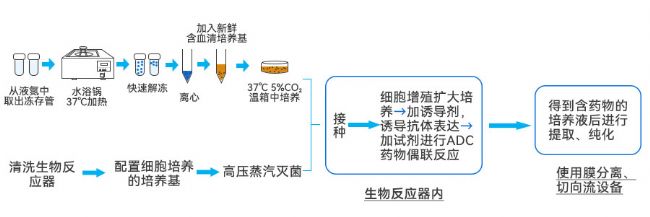 生物反應(yīng)器是細胞培養(yǎng)的核心設(shè)備,為細胞提供一個穩(wěn)定、可控的生長環(huán)境,促進其生長和抗體的合成。對于單克隆抗體藥物生產(chǎn)來說,生物反應(yīng)器主要負責(zé)在無菌條件下大規(guī)模培養(yǎng)表達抗體的細胞株,如CHO細胞等。而對于ADC的生產(chǎn),生物反應(yīng)器則需要同時滿足抗體和藥物連接子(如小分子毒素等)的生產(chǎn)需求,為后續(xù)的偶聯(lián)反應(yīng)提供高質(zhì)量的原材料。