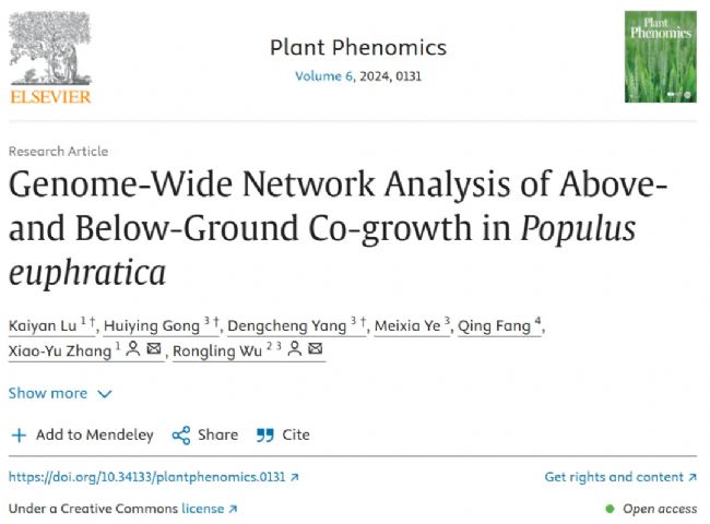 2024年1月,Plant Phenomics在線發(fā)表了北京林業(yè)大學(xué)題為Genome-wide network analysis of above- and below-ground co-growth in Populus euphratica的研究論文。