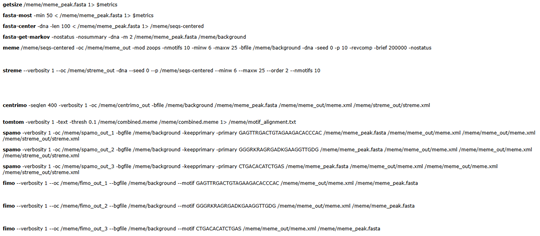 meme-chip -oc meme -meme-p 10 -meme-brief 2000 -meme-nmotifs 10 -minw 6 -maxw 20 -streme-nmotifs 10 meme.fasta