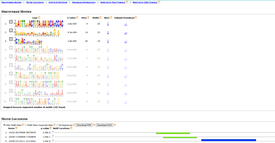 圖 1 MEME-CHIP網(wǎng)頁結果展示