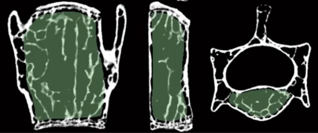 使用平生醫(yī)療(昆山)有限公司的NEMO微型CT(型號NMC100)檢查L4椎骨的所有小梁骨。所有樣品沿長軸垂直放置在樣品艙中。使用的掃描設置如下:源電壓為90kv;電流50µA;掃描時間10min;體素大小0.015×0.015×0.015 mm;投影數(shù)量4000個。掃描后,作者使用Avatar v1.6.5 (平生醫(yī)療科技有限公司)軟件進行三維重建。感興趣體積(VOI)。作者采用閾值分割、區(qū)域生長、形態(tài)學運算和布爾運算等分割算法,采用閾值為700提取軟組織和骨髓相的礦化骨。根據(jù)顯微CT掃描結果評估骨體積分數(shù)(BV/ TV)(%)、骨小梁厚度(Tb.Th)(mm)、骨小梁數(shù)量(Tb.N)(1/mm)、骨小梁間距(Tb.Sp) (mm)、結構模型指數(shù)(SMI)、骨小梁連接密度(connd)(1/mm3)、骨小梁組織礦物質(zhì)密度(Tb.TMD) (g/cm3)。所有測量均由一名初級醫(yī)師在一名高級醫(yī)師的指導下進行。