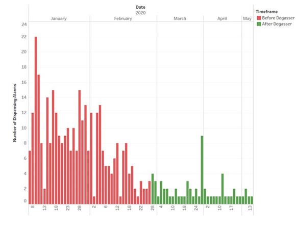 他補(bǔ)充道:“我們實(shí)施的Teflon®AF膜連續(xù)線內(nèi)脫氣解決方案有效地去除了試劑溶液中的溶解氣體,從而大大提高精度,并將分配誤差降低77%。在安裝兩個(gè)DEGASI PLUS系統(tǒng)之前,試劑盒制造商觀察到2%的樣品存在顯著的分配誤差。安裝我們的線內(nèi)脫氣系統(tǒng)從根源上消除了這種分配誤差”。