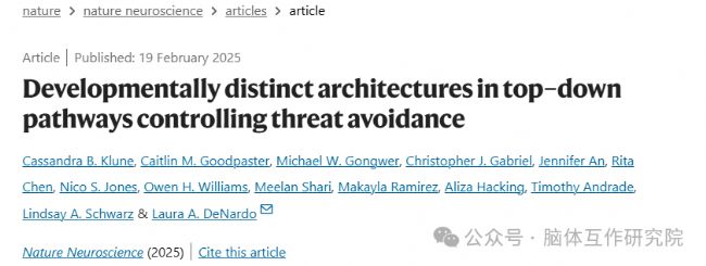參考文獻:Klune, C.B., Goodpaster, C.M., Gongwer, M.W. et al. Developmentally distinct architectures in top–down pathways controlling threat avoidance. Nat Neurosci (2025).