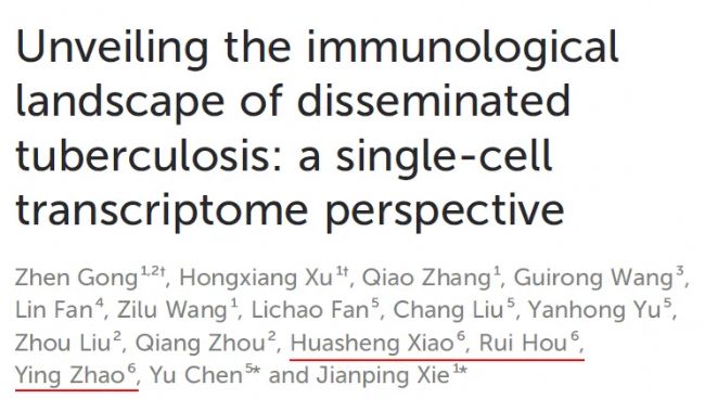 Gong Z, Xu H, Zhang Q, Wang G, Fan L, Wang Z, Fan L, Liu C, Yu Y, Liu Z, Zhou Q, Xiao H, Hou R, Zhao Y, Chen Y and Xie J (2025) Unveiling the immunological landscape of disseminated tuberculosis: a single-cell transcriptome perspective. Front. Immunol. 16:1527592. doi: 10.3389/fimmu.2025.1527592.