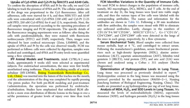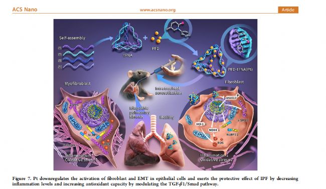 ACS Nano(SCI 1區(qū) 、影響因子:15.8)2024, 18, 26704−26721發(fā)表題為 《Tetrahedral Framework Nucleic Acids Delivery of Pirfenidone for Anti-Inflammatory and Antioxidative Effects to Treat Idiopathic Pulmonary Fibrosis》
