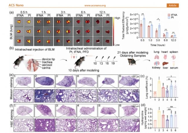 在體內(nèi)實(shí)驗(yàn)中,研究團(tuán)隊(duì)使用了博萊霉素(BLM)誘導(dǎo)的小鼠肺纖維化模型,通過以下步驟驗(yàn)證了Pt的療效:
