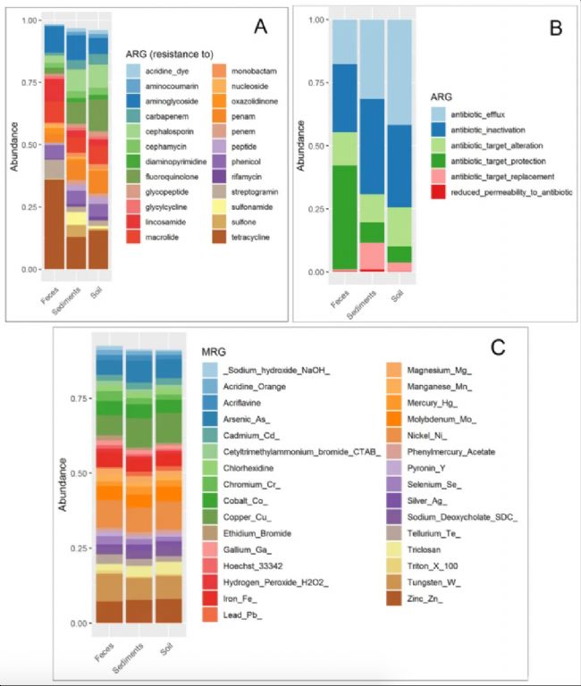 近日,江蘇省疾病預(yù)防控制中心彭世富博士為第一作者、丁震教授為通訊作者研究了豬糞便和施用污泥的農(nóng)業(yè)土壤中ARGs基因和MRGs基因的共存現(xiàn)象,以及這些抗性基因與可移動遺傳元件(MGEs)之間的關(guān)系。相關(guān)研究成果以《Co-occurrence of antimicrobial and metal resistance genes in pig feces and agricultural fields fertilized with slurry》為題發(fā)表于《Science of The Total Environment》期刊。