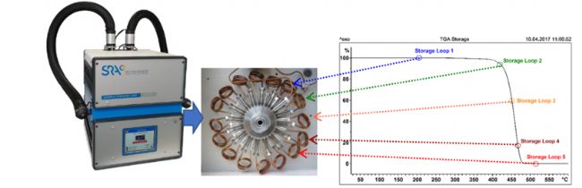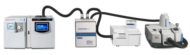 賽默飛TGA-FTIR-GCMS聯(lián)用系統(tǒng)具有豐富多樣的配置,用戶可根據(jù)應(yīng)用需求選擇TGA-FTIR-GCMS三聯(lián)模式(包含并聯(lián)與串聯(lián)模式),TGA-GCMS或GCMS-FTIR兩聯(lián)模式。此外,聯(lián)用時,每個TGA,GCMS,F(xiàn)TIR均可獨(dú)立分析使用。此外,聯(lián)用方案中包含一個具有16位存儲環(huán)的接口(IST16),可對TGA分析16個溫度點(diǎn)的逸出氣體分別單獨(dú)存儲,從而實(shí)現(xiàn)對樣品連續(xù)進(jìn)行多個不同溫度的逸出氣體精細(xì)分析。