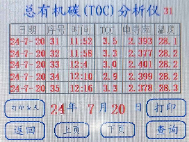 (2)總有機(jī)碳(TOC):通過TOC分析儀檢測(cè)超純水中有機(jī)物殘留(建議<10 ppb),TOC超標(biāo)會(huì)導(dǎo)致液相色譜基線漂移或細(xì)胞培養(yǎng)污染,需排查預(yù)處理濾芯或純化柱性能。當(dāng)TOC>20 ppb時(shí)需更換活性炭濾芯。建議采用每周在線監(jiān)測(cè)+每季度執(zhí)行一次離線TOC檢測(cè),與在線數(shù)據(jù)交叉驗(yàn)證。