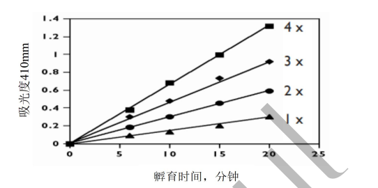 1. 如果某個(gè)特殊測(cè)定的吸光度值大于 1.20,酶提取液應(yīng)用適當(dāng)?shù)木彌_液稀釋并重新測(cè)定。