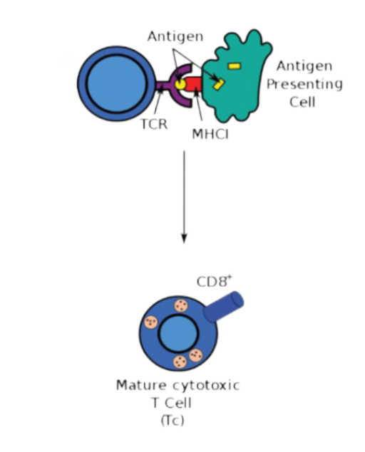CD8+T細胞又被稱為細胞毒性T淋巴細胞(Cytotoxic Tlymphocyte,CTL),是T細胞表面表達CD8亞群的一類細胞,作為一種二聚體受體,可使CD8+T細胞識別MHC I類蛋白呈遞的肽。所有T細胞均起源于從骨髓遷移至胸腺的淋巴樣祖細胞,胸腺容納尚未成熟的T細胞,并為發(fā)展成CD8+T細胞做準備。幼稚的CD8+T細胞與抗原呈遞細胞(Antigen-presentingcells,APC)之間的成功結(jié)合會刺激未成熟的T細胞成為具有細胞毒性功能的活化CD8+T細胞,具有殺傷細胞內(nèi)病原體和腫瘤細胞等細胞毒性能力,該類細胞屬于一組參與細胞介導(dǎo)的適應(yīng)性免疫的專門的淋巴細胞。