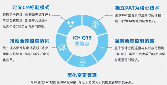 ICH Q13(《原料藥與制劑的連續(xù)制造》,2023年2月正式生效)是國際藥品監(jiān)管機構(gòu)(FDA、EMA、PMDA等)共同制定的指南,旨在規(guī)范連續(xù)制造(Continuous Manufacturing, CM)在制藥行業(yè)的應(yīng)用,以應(yīng)對制藥行業(yè)技術(shù)革新與監(jiān)管標準全球化的雙重需求。