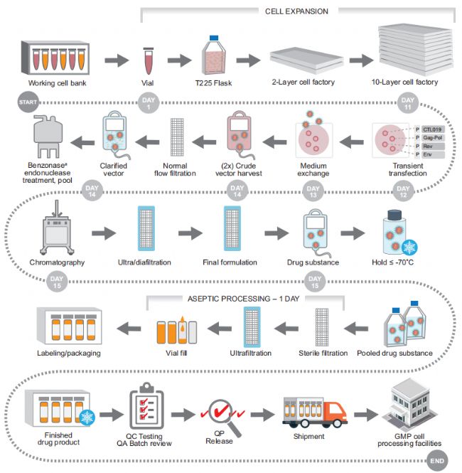 ▲Oxford BioMedica為諾華Kymriah代工的慢病毒制造流程(圖片來源:Molecular Therapy)
