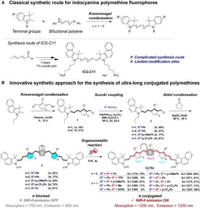 Ge R T, Xiong F, Chen Z B, et al. Indocyanine polymethine fluorophores with extended π-conjugation emitting beyond 1,200 nm for enhanced NIR-II imaging[J]. Chem, 2025.