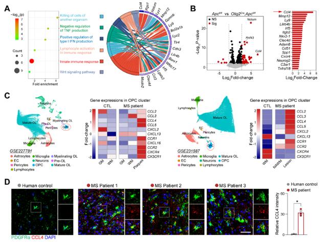 圖2. MS中Wnt過度激活的OPC高度表達(dá)分泌趨化因子CCL4