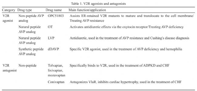 下圖為常用的V2R激動劑和拮抗劑。