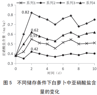 2.2不同時(shí)間下亞硝酸鹽含量的變化規(guī)律