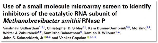 文章題目為“Use of a small molecule microarray screen to identify inhibitors of the catalytic RNA subunit of Methanobrevibacter smithii RNase P”于2024年11月發(fā)表在Nucleic Acids Research雜志,作者來自于美國國家癌癥研究所。