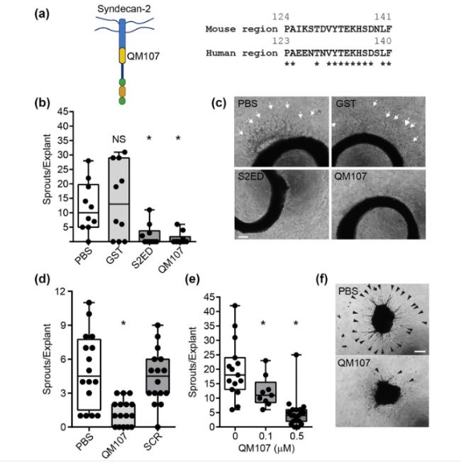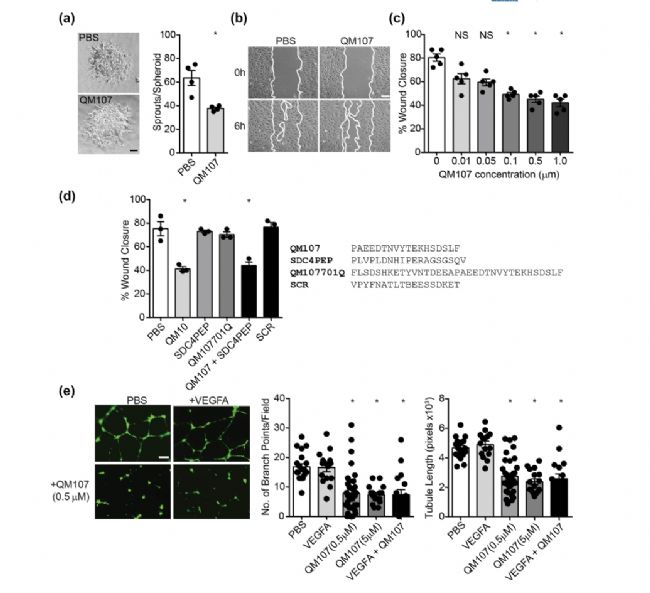 圖1.QM107是源自十二烷二(SDC2)外域的肽,具有抗血管生成作用