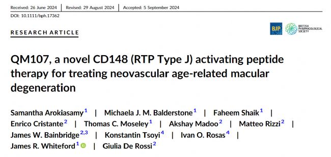 Arokiasamy S, Balderstone MJM, Shaik F, et al. QM107, a novel CD148 (RTP Type J) activating peptide therapy for treating neovascular age-related macular degeneration.