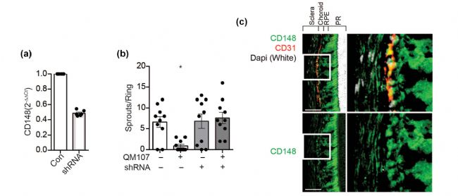 圖4.CD148是QM107活性所必需的,在小鼠脈絡(luò)膜ECs中表達(dá)