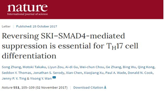 TH17細胞在宿主防御、炎癥和自身免疫中至關(guān)重要,TGFβ與IL-6協(xié)同對TH17細胞分化起重要作用,但TGFβ促進TH17細胞分化的機制尚不清楚。