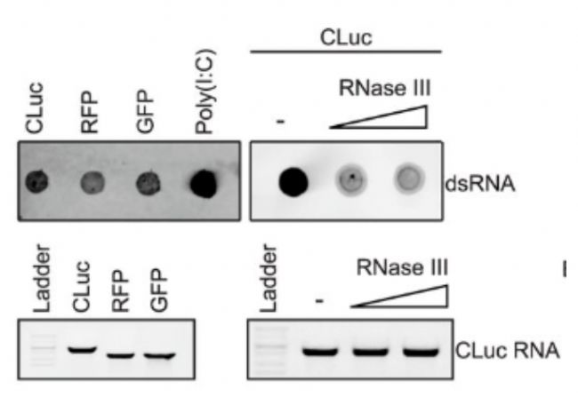 J2單克隆抗體(Anti-dsRNA mAb J2)是dsRNA檢測的金標(biāo)準(zhǔn),具有高度特異性。它最初用于植物病毒的研究,但自從Weber等人在2006年的開創(chuàng)性論文發(fā)表以來,J2被用來證明所有正鏈RNA病毒在感染的細(xì)胞中產(chǎn)生的大量dsRNA。