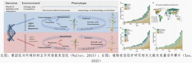 隨著基因組學(xué)研究的發(fā)展,與之對(duì)應(yīng)的表型組學(xué)研究從21世紀(jì)10年代初逐漸成為生物學(xué)研究的熱點(diǎn)之一。從科學(xué)研究角度,表型組學(xué)研究能夠解釋基因組-環(huán)境-表型性狀的復(fù)雜遺傳與表達(dá)調(diào)控關(guān)系;從農(nóng)業(yè)生產(chǎn)角度,植物表型組學(xué)則可以進(jìn)一步提高作物產(chǎn)量并助力解決種質(zhì)資源安全問(wèn)題。因此,近十余年間,表型組學(xué)尤其是植物表型組學(xué)的研究得到了飛速的發(fā)展。