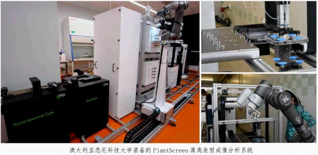 由于藻類樣品的特殊性,對(duì)藻類進(jìn)行表型成像分析需要進(jìn)行專門的設(shè)計(jì)。PlantScreen藻類表型成像分析系統(tǒng)專門用來(lái)對(duì)多孔板中的藻類樣品進(jìn)行表型測(cè)量。系統(tǒng)包括藻類自動(dòng)培養(yǎng)、樣品加注、葉綠素?zé)晒獬上衽c高光譜成像等功能。樣品多孔板的轉(zhuǎn)運(yùn)都通過(guò)機(jī)器人完成,從而實(shí)現(xiàn)無(wú)人值守的高通量藻類表型自動(dòng)測(cè)量。