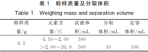 稱(chēng)取0.5g(精確至0.0001g)試樣,將試樣置于200mL玻璃燒杯中,用少量水潤(rùn)濕,加入15mLHCL低溫溶解約10min,加入5mLHNO3低溫加熱至試樣溶解完全后,取下冷卻至室溫,移入500mL容量瓶中,用水定容后混勻,靜置澄清。同法制備樣品空白,按儀器工作條件進(jìn)行測(cè)定。