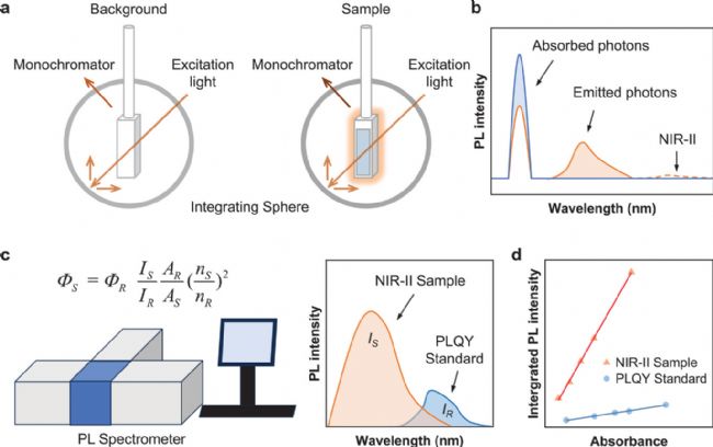 圖1. 不同方式測量光致發(fā)光量子產(chǎn)率(PLQY)示意圖