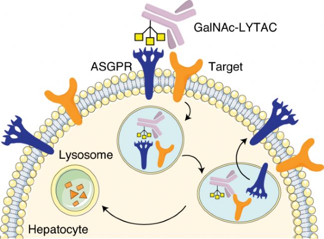 ASGPR在肝細胞質膜上大量表達,并具有快速內化能力,使其在清除血液中糖蛋白方面具有巨大潛力。ASGPR的天然配體包括去唾液酸血清類黏蛋白(ASOR)、去唾液酸銅藍蛋白和去唾液酸運鐵蛋白等。ASGPR通過識別半乳糖殘基或N-乙酰半乳糖胺介導ASOR的清除,這一過程具有高度特異性。
