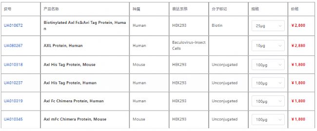 AXL蛋白為I型跨膜受體,分子量104kDa,經(jīng)蛋白酶解可產(chǎn)生可溶性胞外片段。作為TAM家族成員(含TYRO3/AXL/MER),AXL在上皮細(xì)胞、間質(zhì)細(xì)胞和造血細(xì)胞中廣泛表達(dá),在多種惡性腫瘤中異常高表達(dá)。