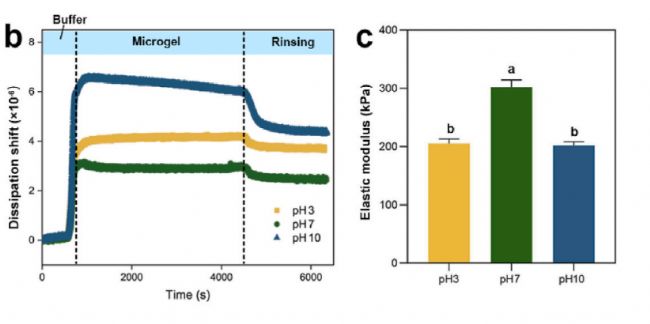 - 電荷與尺寸效應(yīng):QCM-D數(shù)據(jù)證實(shí),非溶脹微凝膠因尺寸小、靜電屏障低,吸附速率更快,但溶脹態(tài)形成更厚界面層(圖2c)。