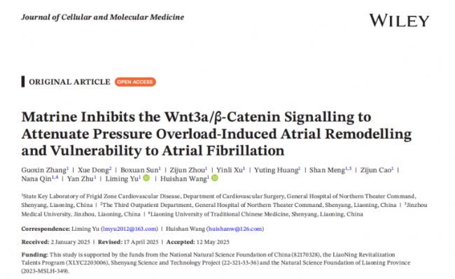 基于此,北部戰(zhàn)區(qū)總醫(yī)院王輝山教授團(tuán)隊(duì)在Journal of Cellular and Molecular Medicine雜志上發(fā)表文章“Matrine Inhibits the Wnt3a/β-Catenin Signalling to Attenuate Pressure Overload-Induced Atrial Remodelling and Vulnerability to Atrial Fibrillation”相關(guān)文獻(xiàn)。