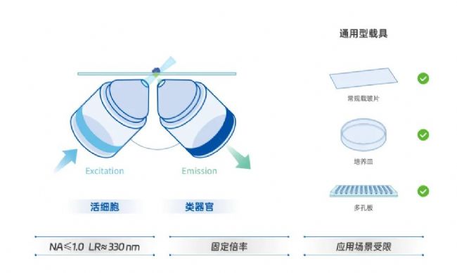 雖然第一代光片顯微鏡相對(duì)于共聚焦顯微鏡光毒性低,成像通量高,但其分辨率及易用性受限,且無(wú)法適配常規(guī)載具。